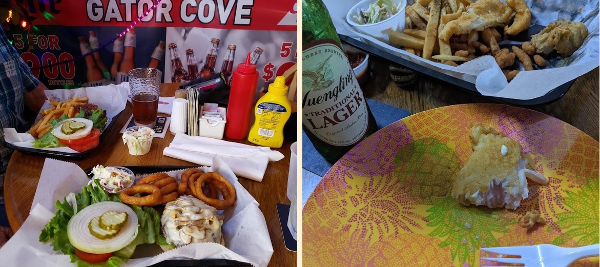 Gator Cove deserves a visit for its lively atmosphere and great food. Be ready for a relaxed vibe where camaraderie thrives. Locals often frequent the restaurant, creating a warm community feeling. Enjoy a cheap eats experience with large portions that guarantee leftovers. The dog-friendly patio lets your furry friend join the fun!